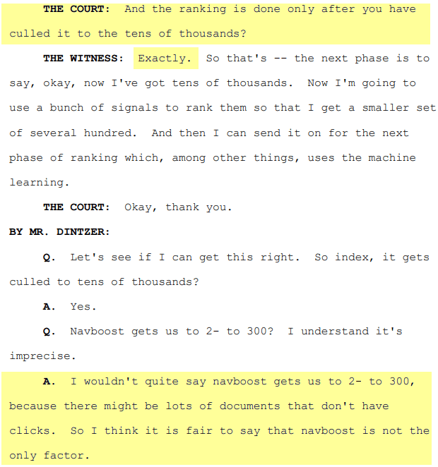 Pandu Nayak stated during the trial: "Remember, you get Navboost only after they're retrieved in the first place."