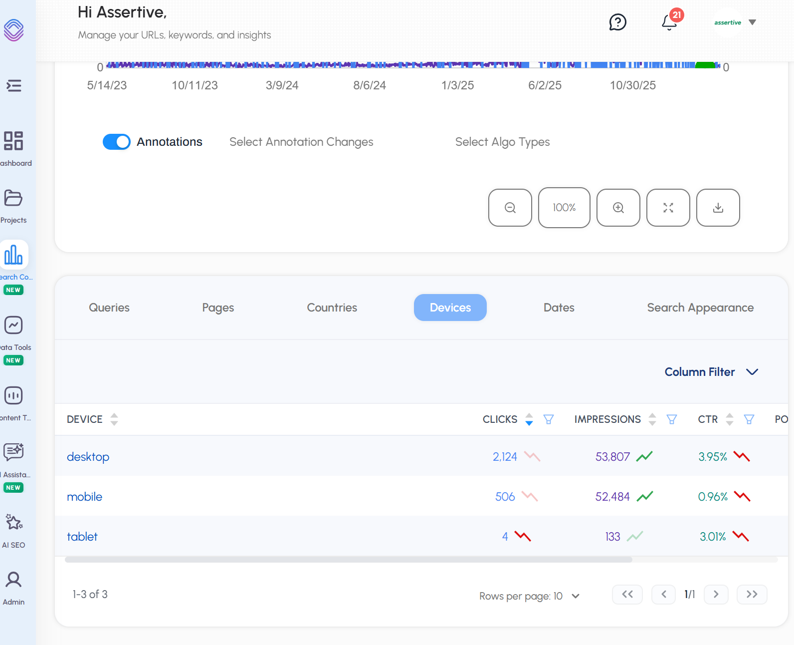 Seasonal content benefits from the 13-month window. A Christmas gift guide published in November will still have its strong December click data in the window the following November, giving it a head start the next year.