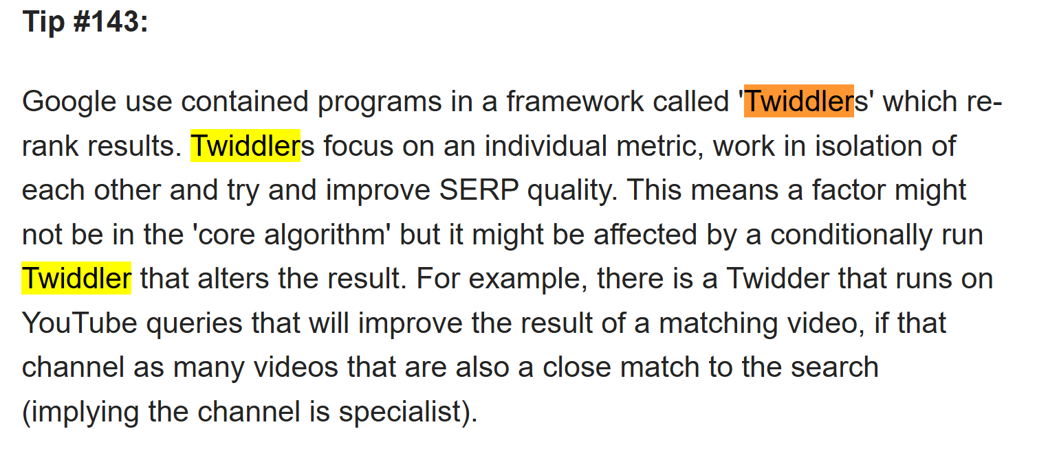 A good friend of mine in the SEO space "Mark Williams Cook" has a 500 unsolicited SEO tips page - in here TIP 143 onward he covers Twiddlers.