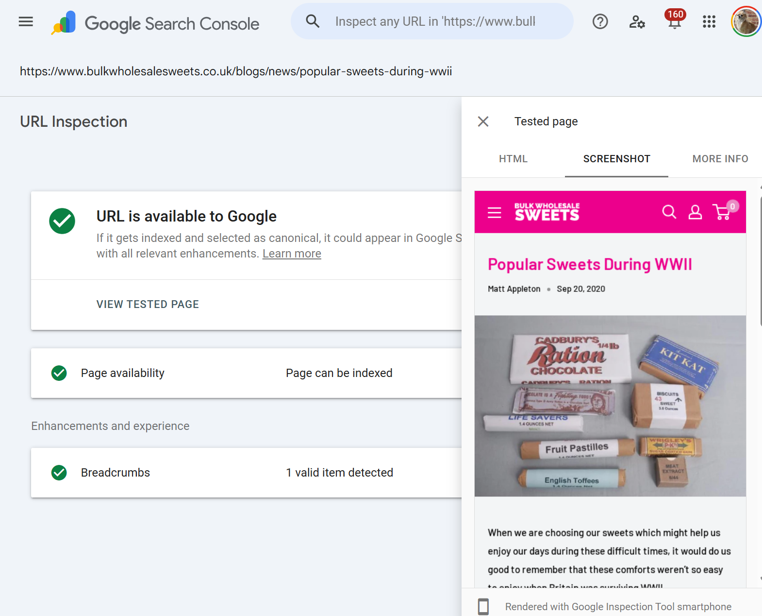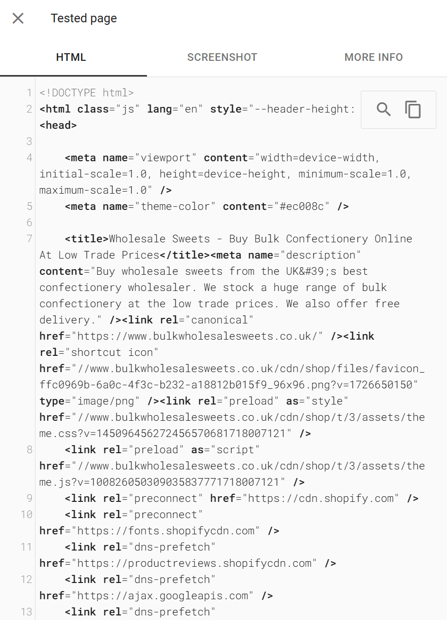 This is where some SEOs skip or don't always dig into the output or is something that gets ignored. They shouldn't. The View Tested Page data is often an undiagnosed issue may become apparent from finding anomalies in the HTML output, no rendering on the screenshot, blocked resources used for rendering the pages etc.