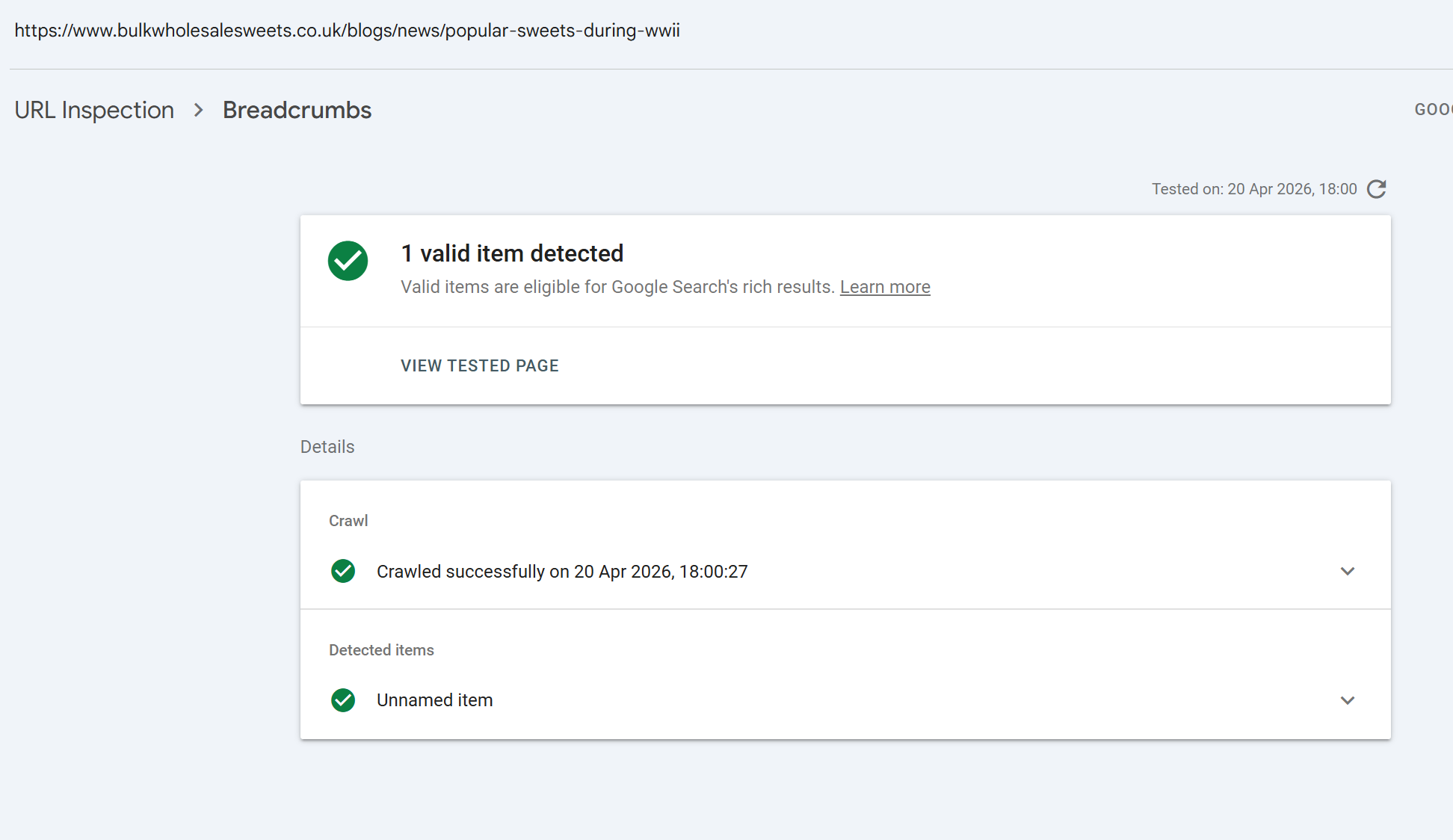 You can see exactly which rich result types Google detected on a specific URL and whether they're valid.