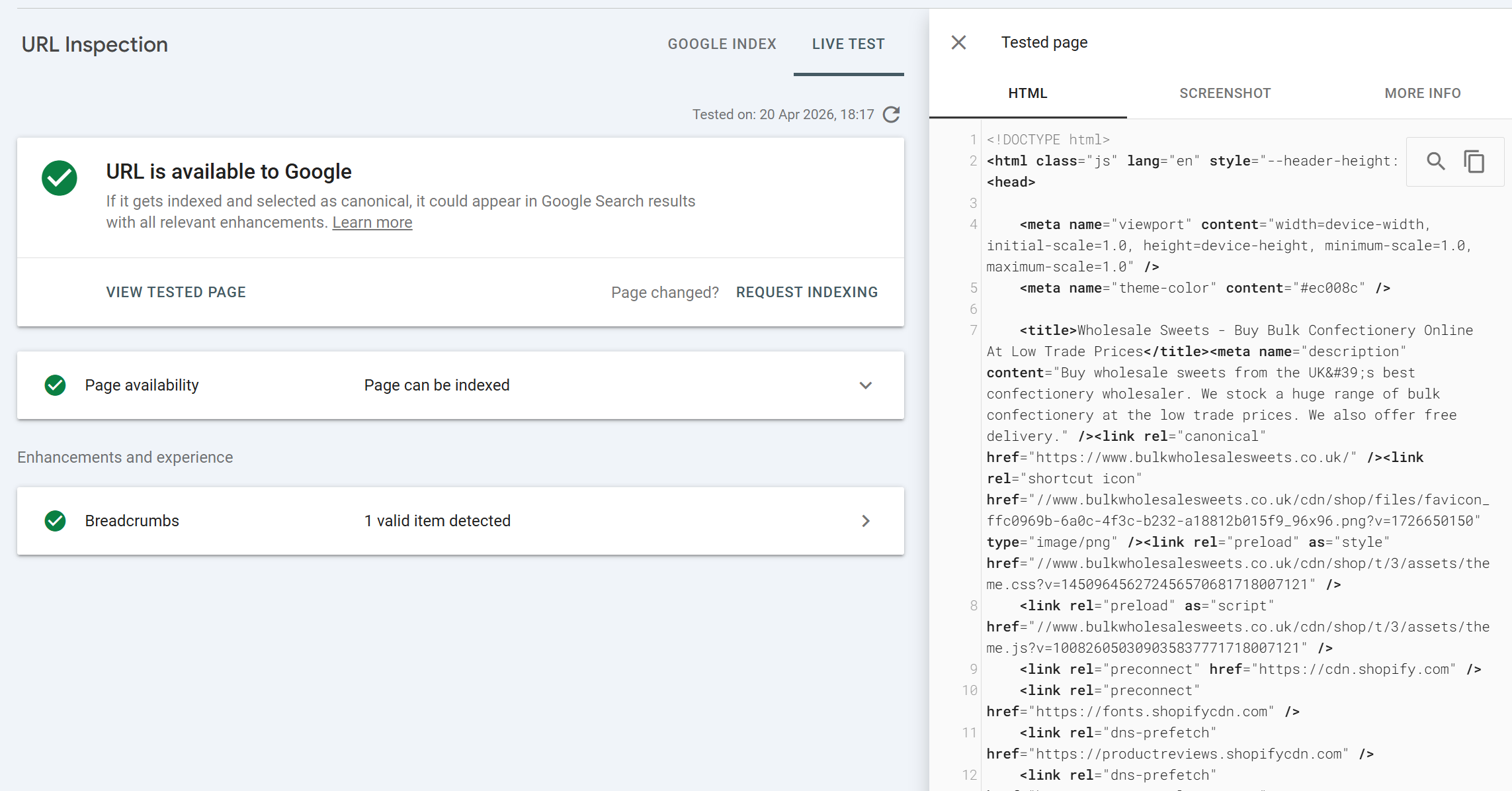 Live test is also where you'll catch issues that wouldn't show in cached data, for example, a Cloudflare rule that accidentally started challenging Googlebot, or a misconfigured WAF rule that fires on a specific user agent.