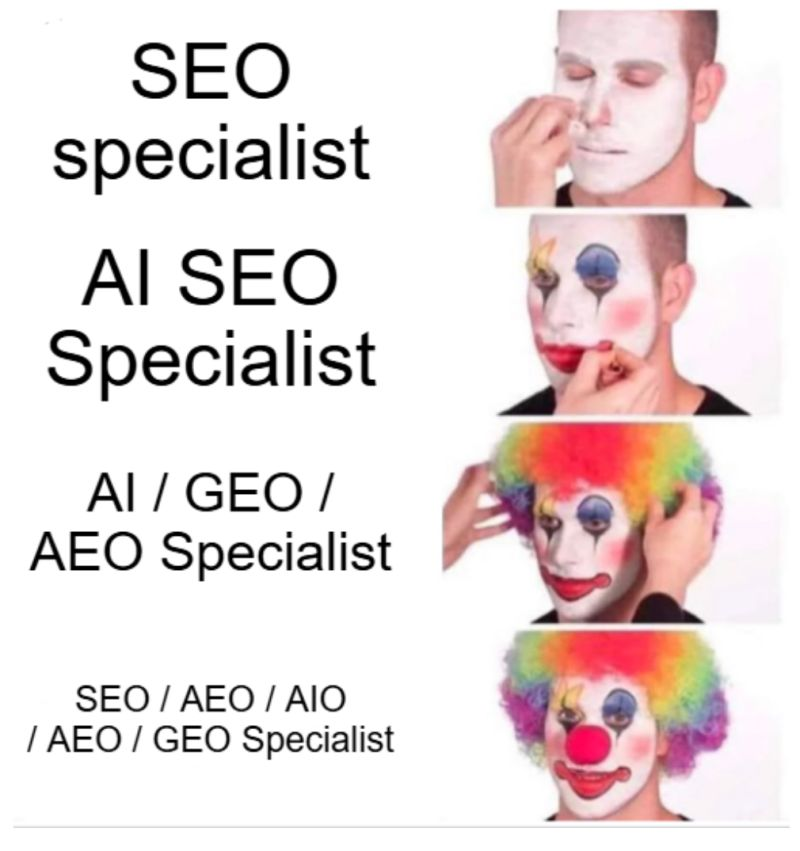Anyway, I digress, so now, right on schedule, we have our latest identity crisis: Generative Engine Optimisation. Or GEO. Or AEO. Or LLM-SEO. Pick your acronym there's a consultant somewhere ready to sell you a retainer around it.