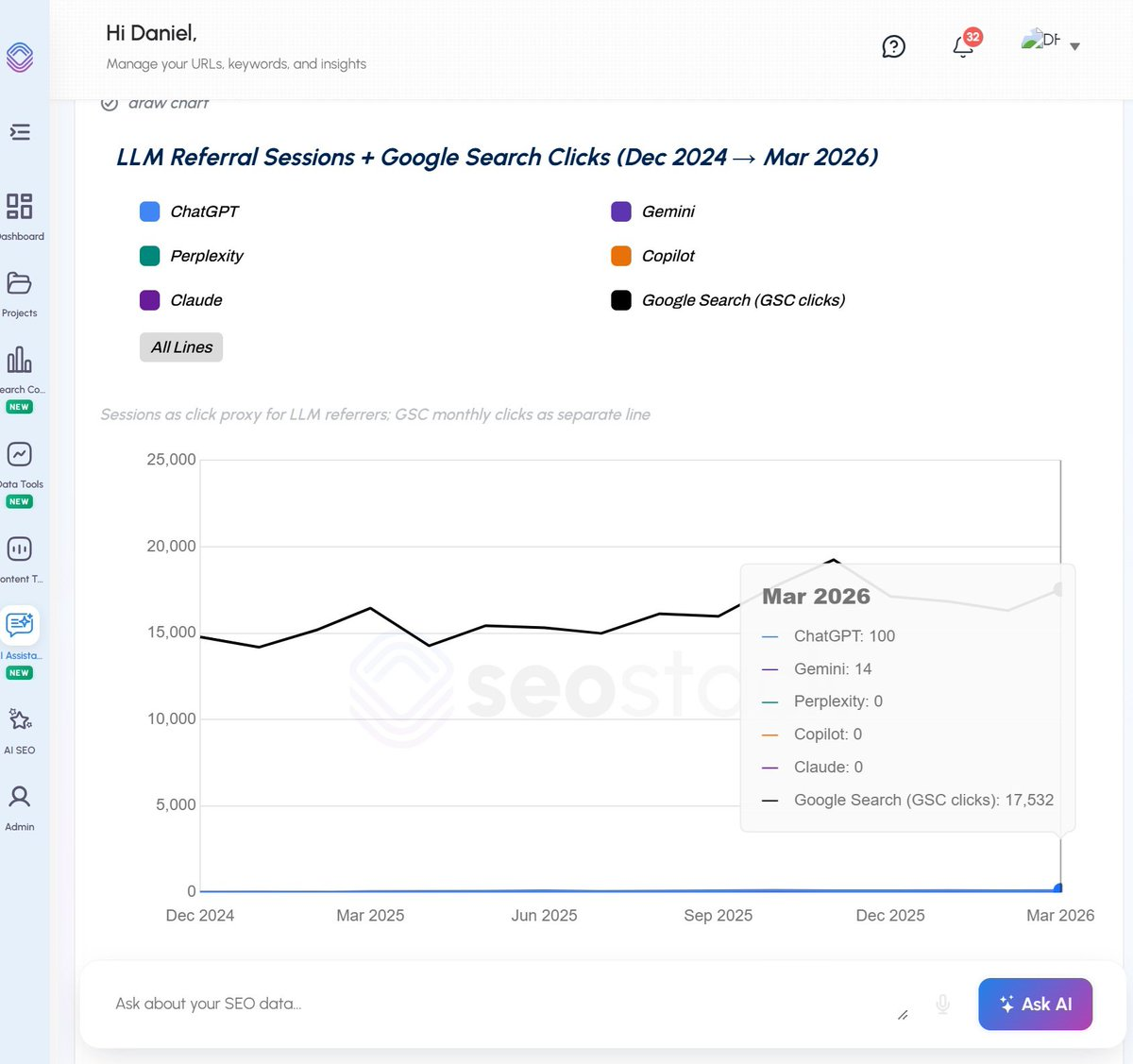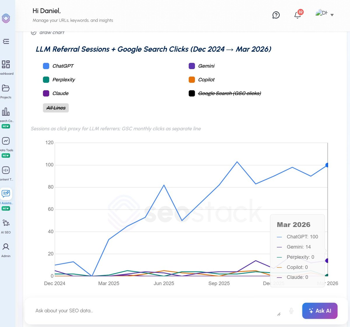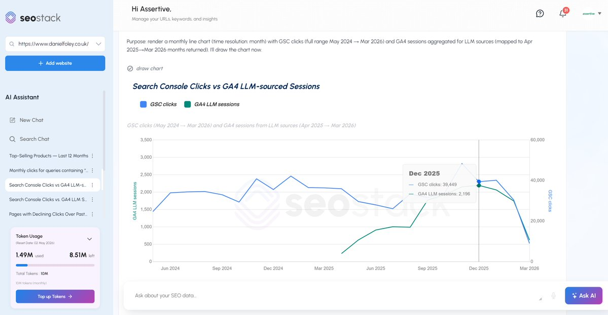 And we also have SEO stack which blends GSC + GA4 data, where we can segment out LLM traffic (by referring source or aggregated)