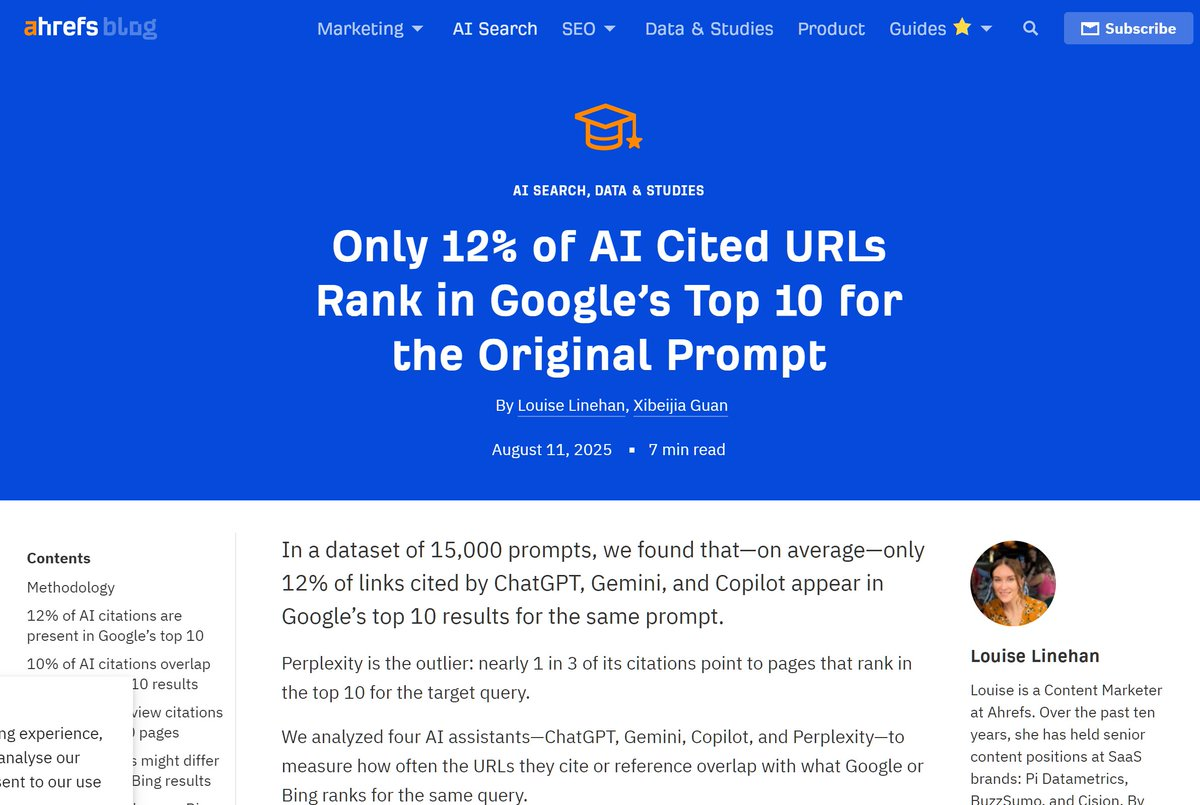 Research from Ahrefs shows that 80% of LLM citations don't even rank in Google's top 100 (see